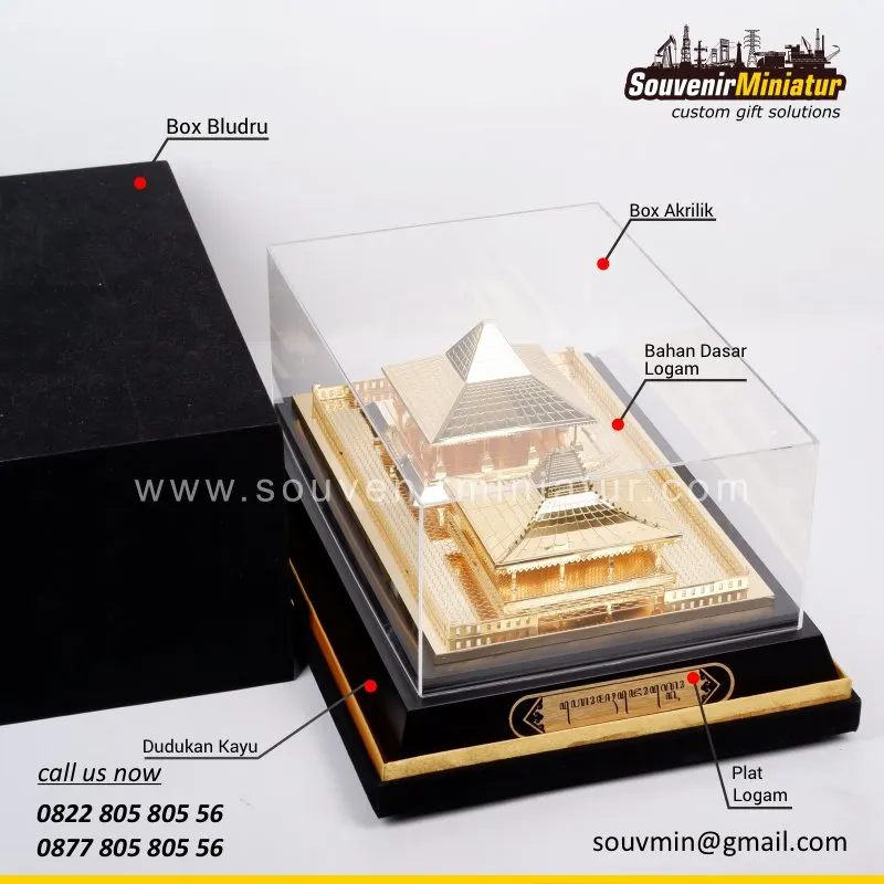 Miniatur Rumah Joglo Yogyakarta ini merangkum keindahan tersebut dalam bentuk elegan, detail keemasan, dan proporsi presisi, menghadirkan nostalgia budaya Jawa yang hangat sebagai kenang-kenangan abadi, berkelas, dan bermakna untuk segala generasi.