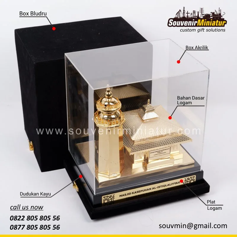 Miniatur masjid adalah cendera mata apik bernuansa religi, sarat doa dan nilai. Wujudkan kenangan penuh makna bersama SouvenirMiniatur, pilihan tepat untuk hadiah berkesan, berkelas, dan bernilai spiritual.
