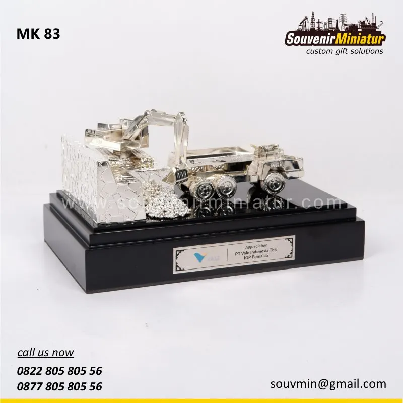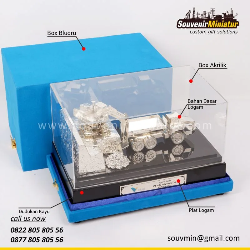 Miniatur PT Vale Indonesia ini dirancang sebagai kenang-kenangan representatif yang terinspirasi langsung dari visual truck dan excavator. Detailnya menggambarkan aktivitas tambang secara realistis, menjadikannya simbol apresiasi yang mampu menghadirkan cerita tentang dedikasi dan pencapaian perusahaan.