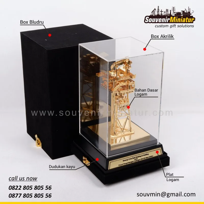 Miniatur Proyek Pengembangan Lapangan ini hadir sebagai kenang-kenangan eksklusif. Dengan detail presisi berlapis emas, miniatur pertambangan ini melambangkan pencapaian besar sekaligus kekompakan tim dalam mewujudkan visi energi nasional.