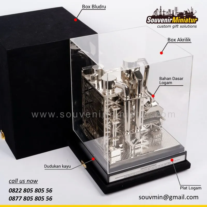 Miniatur Tungku Pemanas dibuat sebagai cendera mata yang merepresentasikan bagian penting dari proses industri tersebut, menghadirkan detail struktur yang menggambarkan kompleksitas fasilitas aslinya.